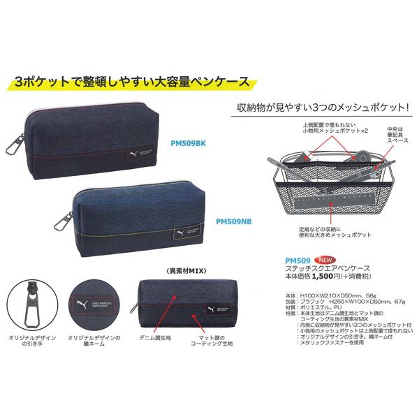 PUMA プーマ ステッチスクエア ペンケース 筆箱 PM509BK/ブラック PM509NB/ネイビー クツワ 2024年6月 男の子 かっこいい