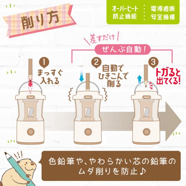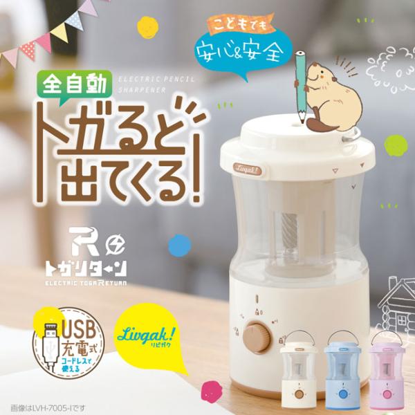 自動鉛筆削り ソニック リビガク 充電式トガリターン ブルー 青 ピンク アイボリーホワイト 白 SONIC 全自動 USB充電式 コードレス えんぴつ 学校 可愛い 爆買