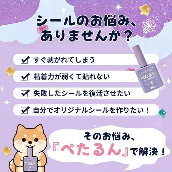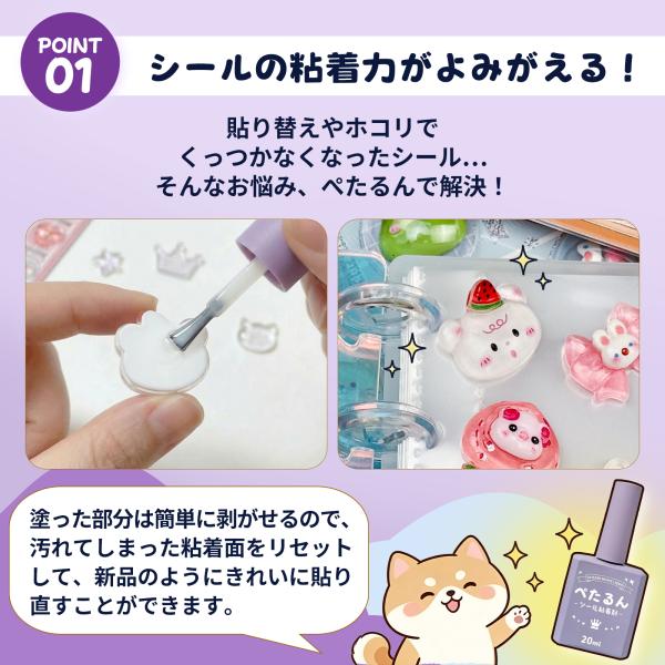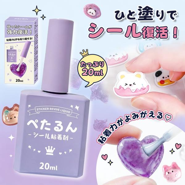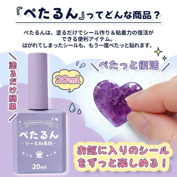 塗るだけでシールに! ペたるん シール粘着液 20ml|粘着復活 シール復活液 のり 水性 透明 接着剤 子どもも安心 簡単 手作り クラフト ハンドメイド シール