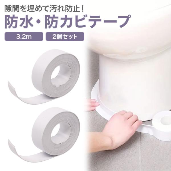 防水テープ 2個セット 3.2m 防カビテープ トイレ 隙間テープ マスキングテープ 防水 すきまテープ コンロ 隙間 テープ 台所 油はね 洗面台 シンク 浴室 キッチン