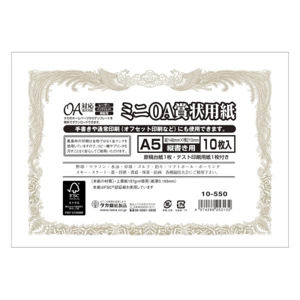 ササガワ ミニOA賞状用紙 A5判 10P 縦書用 10-550 メール便対応(2個まで) 4974268253132
