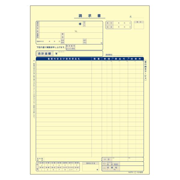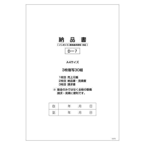 納品見積請求書 D-7 自動車関連書類 インボイス対応 納品/見積り 請求書 売上元帳 3枚複写