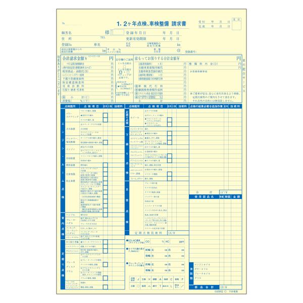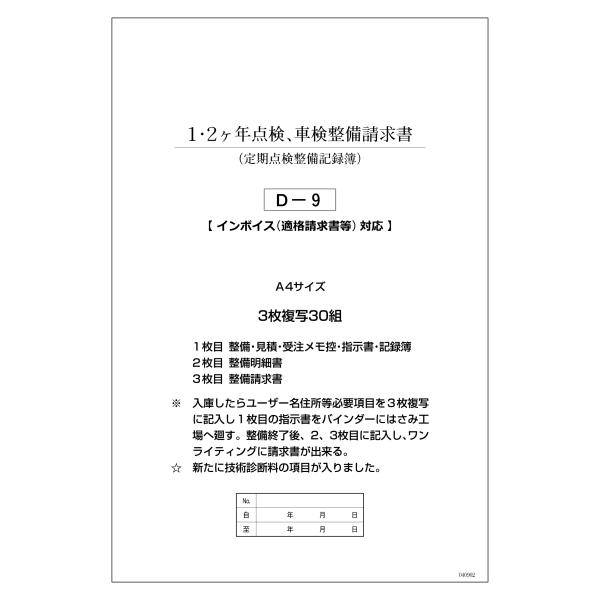 1、2ヶ年点検、車検整備請求書 D-9 自動車関連書類 インボイス 適格請求書 対応型
