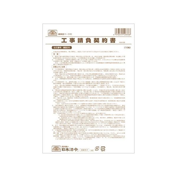 建設26 工事請負契約書 B4サイズ・10枚入・請負金額が比較的少額の小工事用|日本法令 5部までネコポス便可能