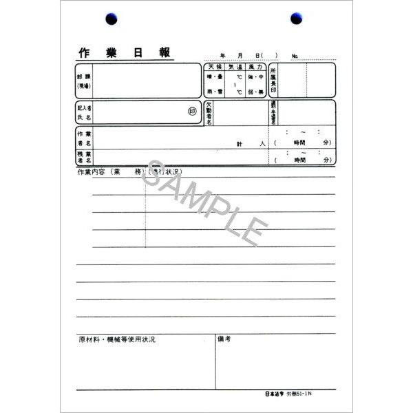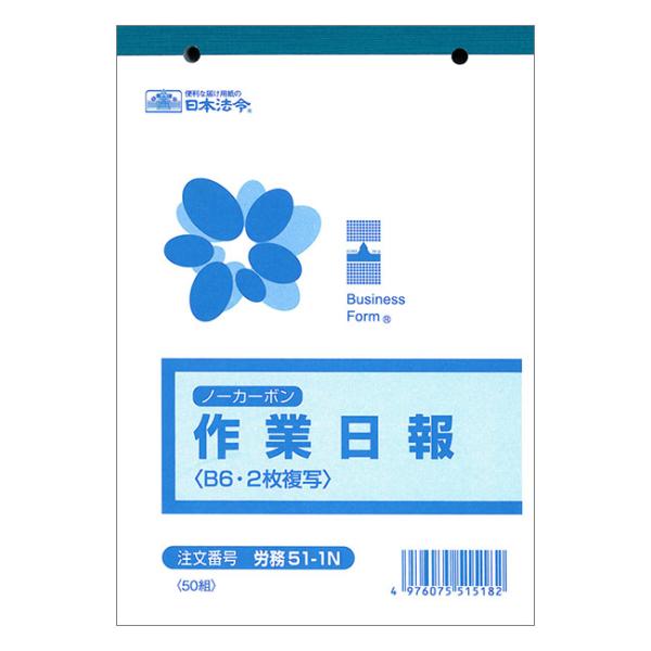 労務51-1N ノーカーボン作業日報 2枚複写式・B6サイズ・50組|日本法令 4冊までネコポス便可能
