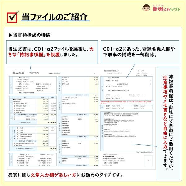 C01‐b2 自動車注文書 / 注文書 車 見積り 発注 請書 / Excel ファイル 新田くんソフト