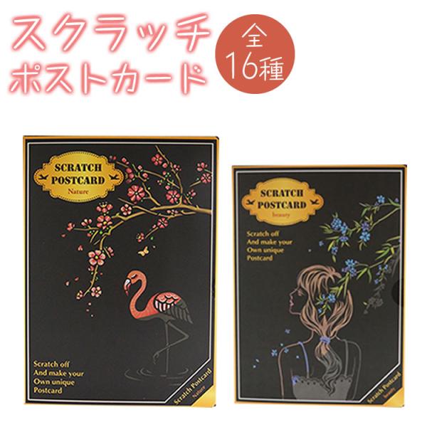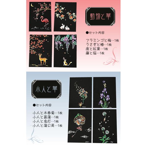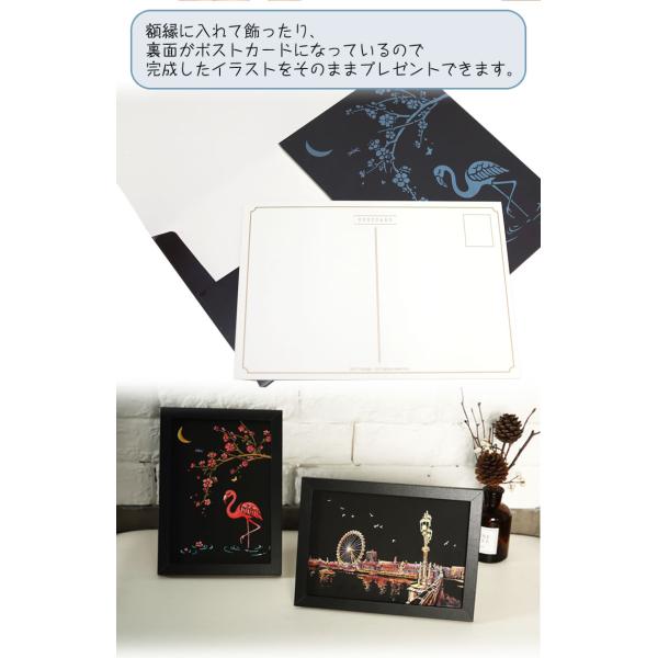 スクラッチアート ポストカード 花 建物 動物 簡単 ヒーリング 4枚入り 絵画 スクラッチ カード