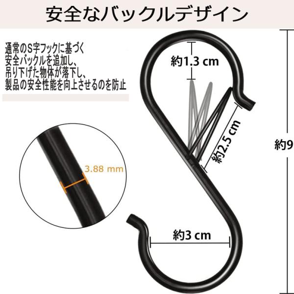S字フック 落ちない 10個セット おしゃれ 脱落防止 キッチン お風呂 園芸 吊り下げ ステンレ9CM 収納 Sじフック 耐荷重15kg 外れない