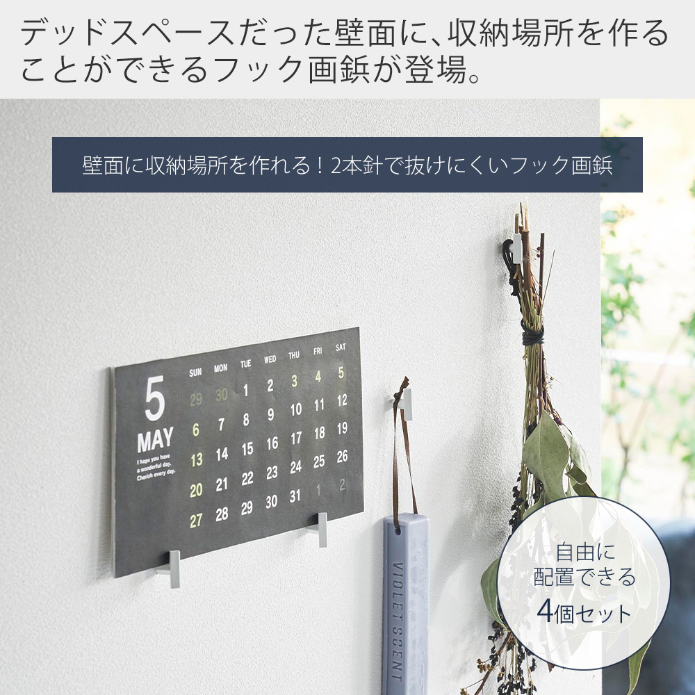 山崎実業 公式 タワー 2本の針で抜けにくいフック画鋲 S 4個組 tower 2本針 壁掛け 押しピン 石こうボード 小型 インテリア 小物 1923 1924
