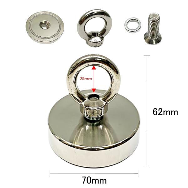 超強力 マグネットフック 磁石 70mm 耐荷重150kg ネオジム磁石 ステンレス マグネット フック 強力 磁力 防腐 防錆 7cm 1個入 (HOOK701)