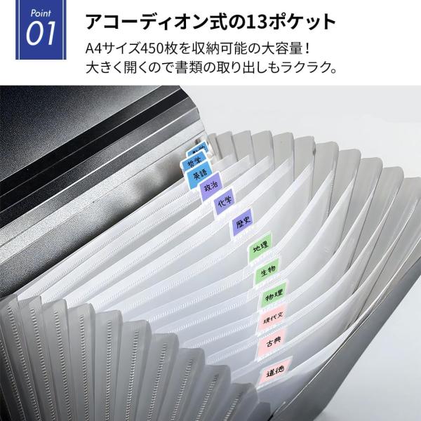 ドキュメント ファイル 2個セット アコーディオン ファイルケース ケース A4 13ポケット 書類ケース 書類収納 持ち運び 拡張式 区分けラベル付き