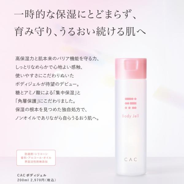 CAC ボディジェル【先着30個限定】2026年3月11日〜新発売キャンペーン!通常2,970円 →2,600円(税込)お子様にも使える無添加処方 ノンオイル、ノンシリンコン
