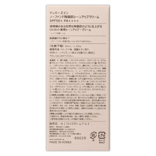 numbuzin(ナンバーズイン) 3番ノーファンデ陶器肌トーンアップクリーム 50+・PA++++ 50ml