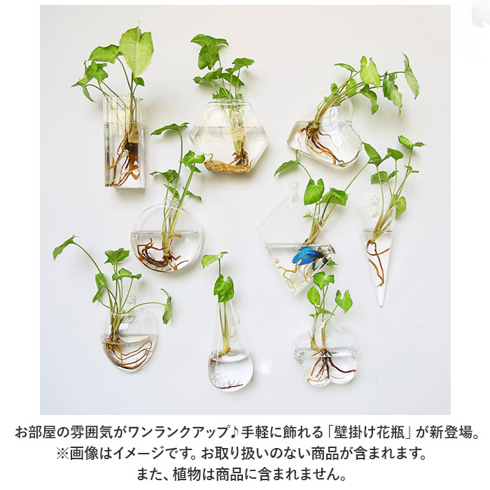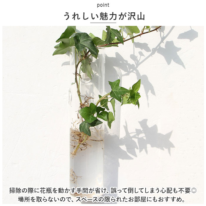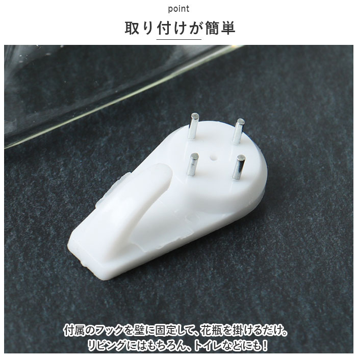 壁掛け 花瓶 通販 一輪挿し フラワーベース ガラス 花びん 花器 小さい コンパクト フック付き 倒れない 涼しげ 透明 クリア 壁飾り ウォールデコ 壁掛け