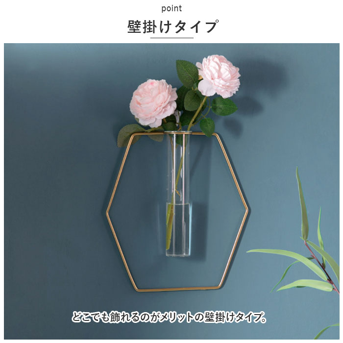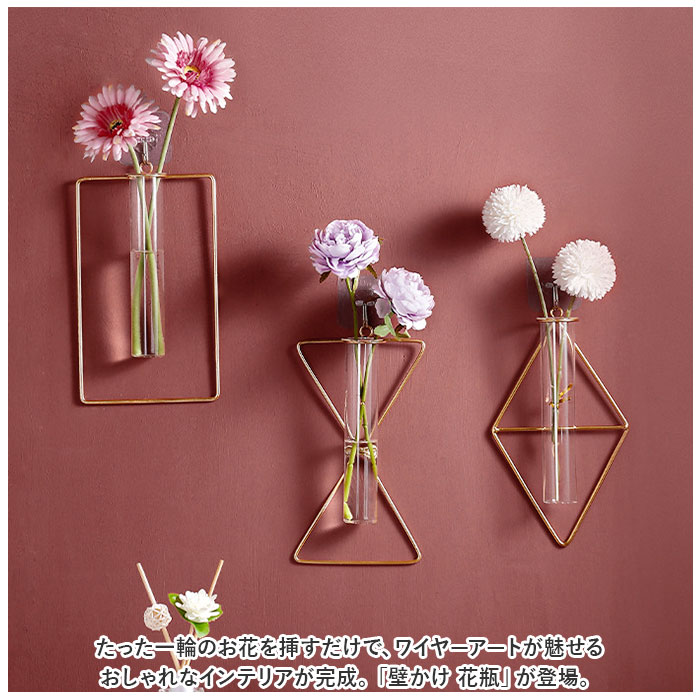 花瓶 一輪挿し 壁掛け 通販 フラワーベース かびん 花器 ガラス 試験管 おしゃれ かわいい ワイヤーフレーム 壁かけ ナチュラル シンプル ゴールド 花瓶