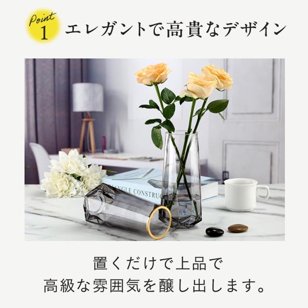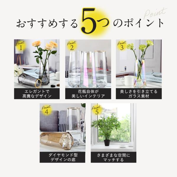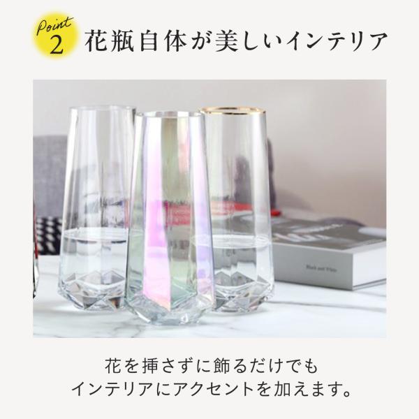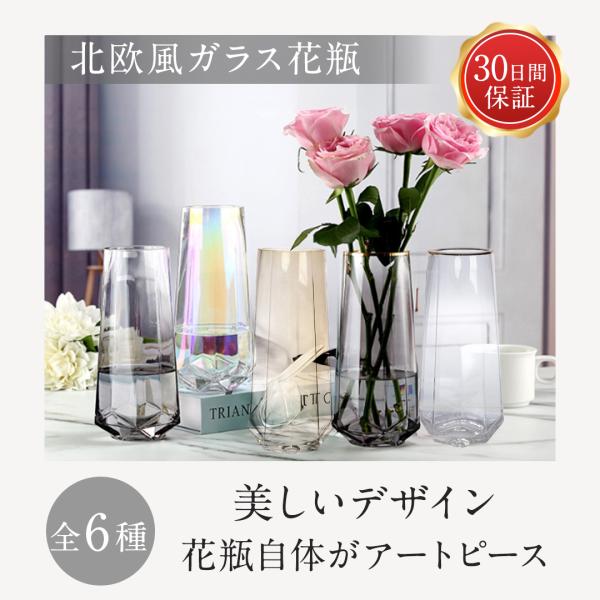 北欧風 ガラス 花瓶 シンプル モダン 上品 おしゃれ グレー アンバー レインボー クリア 金口飾りグレー 金口飾りクリア 高級感 エレガント