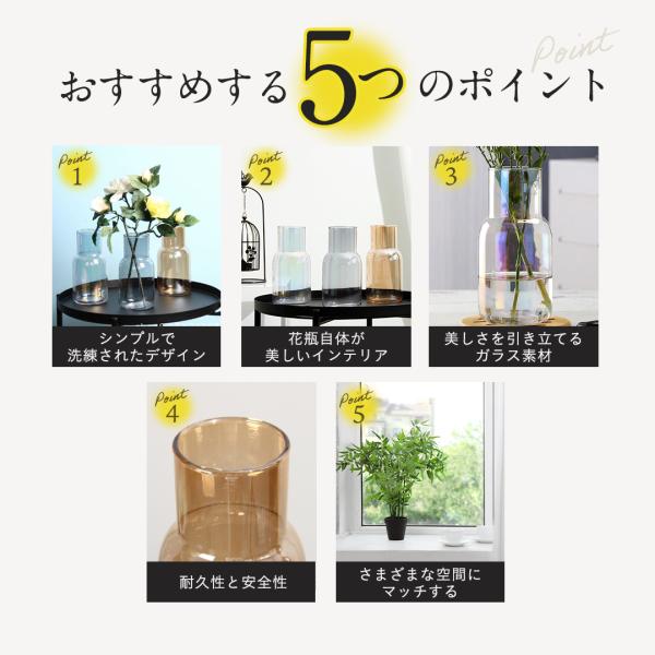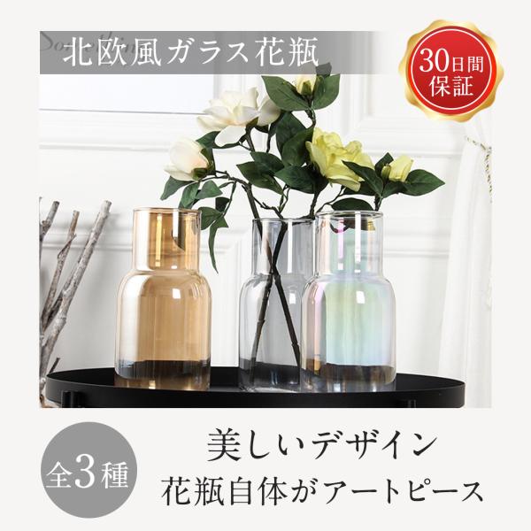 【選べる3色】 北欧風 ガラス 花瓶 フラワーベース 20cm シンプル モダン 上品 おしゃれ 高級感 高貴 エレガント デザイン 花器 インテリア 花びん