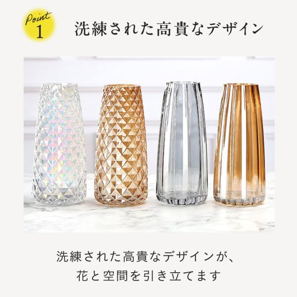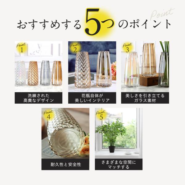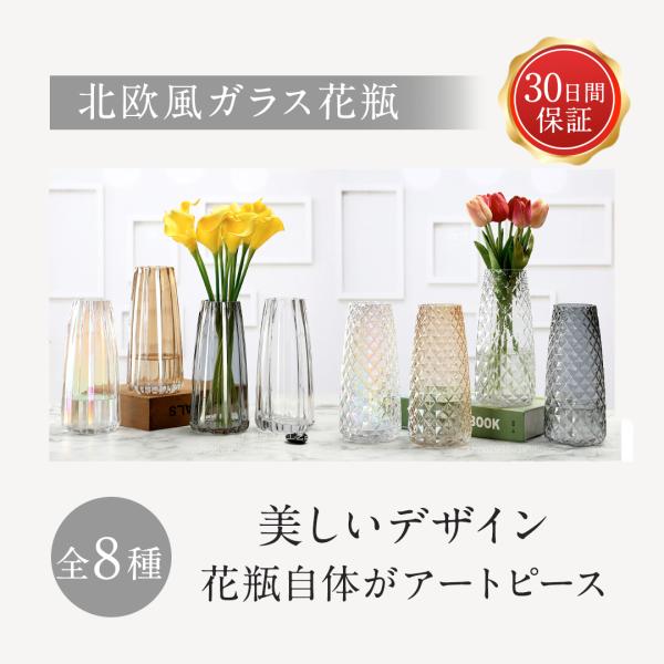 【選べる8種】 北欧風 ガラス 花瓶 フラワーベース 20cm シンプル モダン 上品 おしゃれ アンバー グレー クリア オーロラ レインボー パイナップル ストライプ