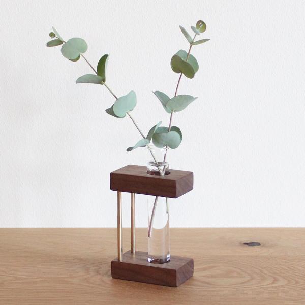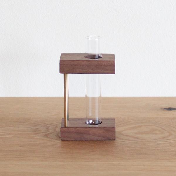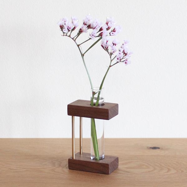 無垢の一輪挿し ウォールナット 一輪挿し おしゃれ 北欧 人気 真鍮 ウッド 木製 ガラス フラワーベース 花器 花瓶 プレゼント 生花