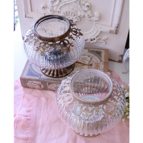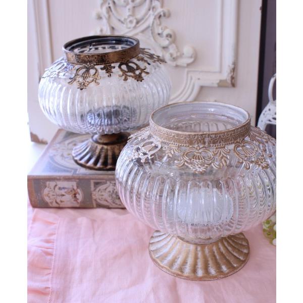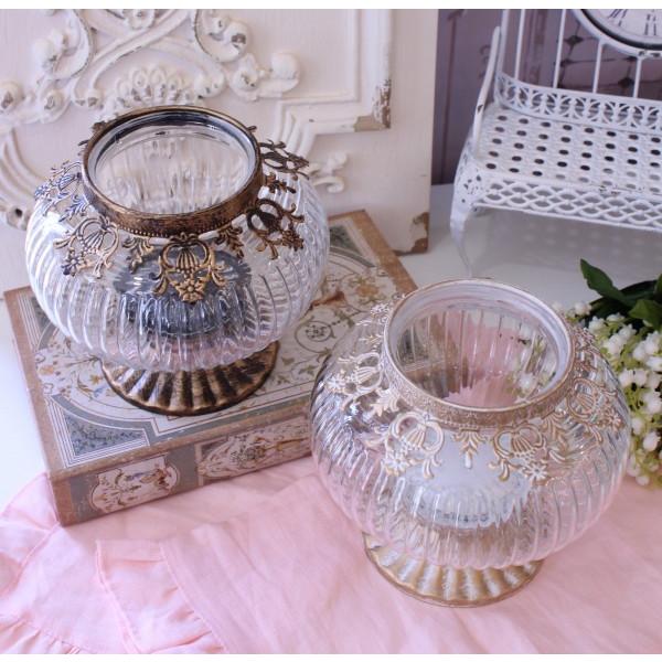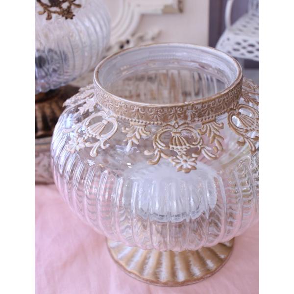 アンティーク風 ガラスベース 花瓶 フラワーベース LEDキャンドルホルダー ホワイト ゴールド ラウンド ゴブレット (135) ガラス製 ヨーロピアン コンポート ベ