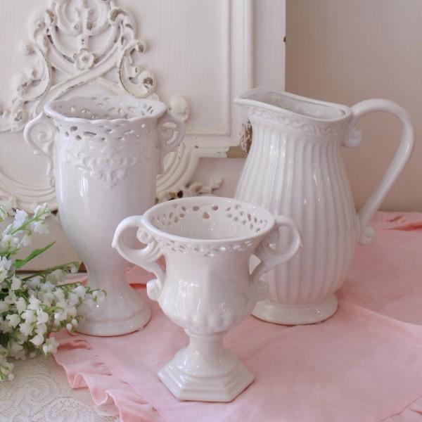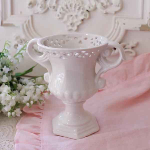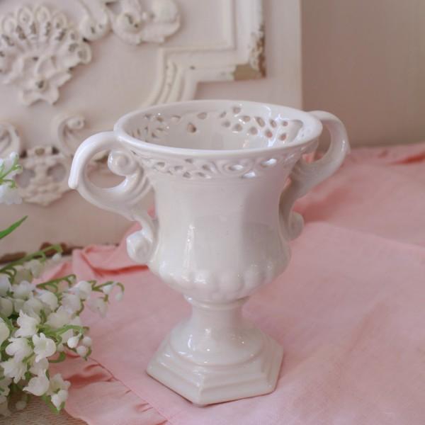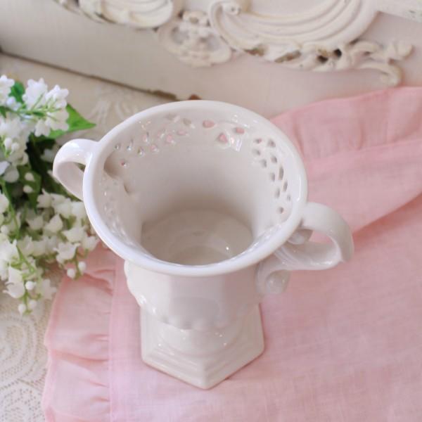フラワーベース ホワイト 花瓶 フルール (184) フラワーポット ベース 陶器 アイボリー おしゃれ ヨーロピアン 輸入 花器 花びん 花材 ローズ かわいい 小さい