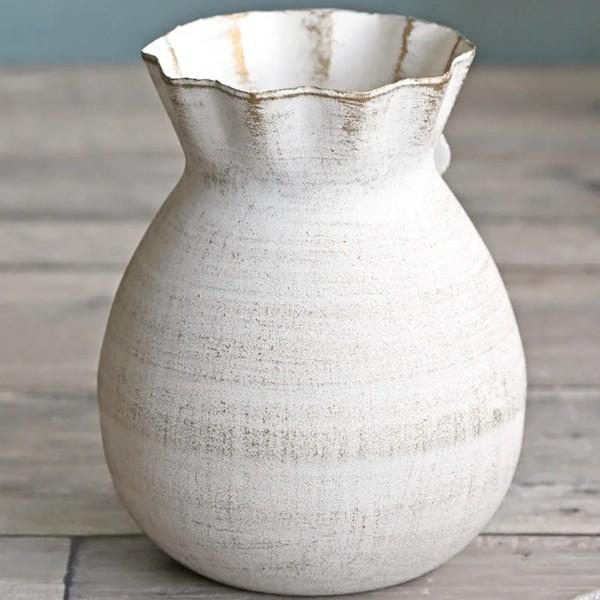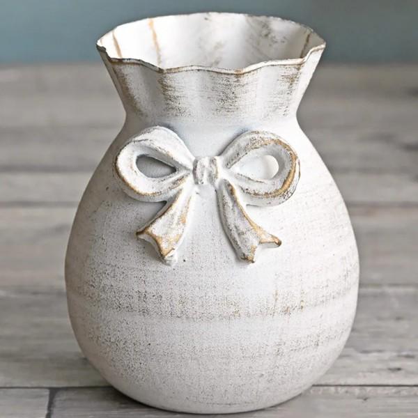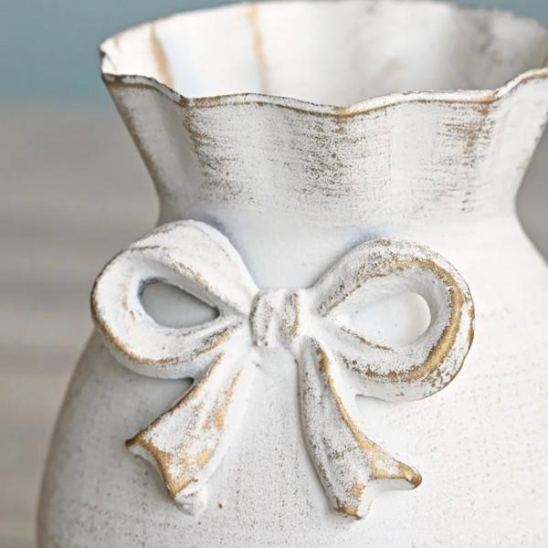リボン フラワーベース アイボリー ブリキ 花瓶 ホワイト 金属製 (1576)おしゃれ アンティーク調 シャビーシック アンティーク ヨーロピアン調 花器
