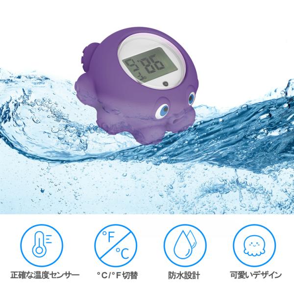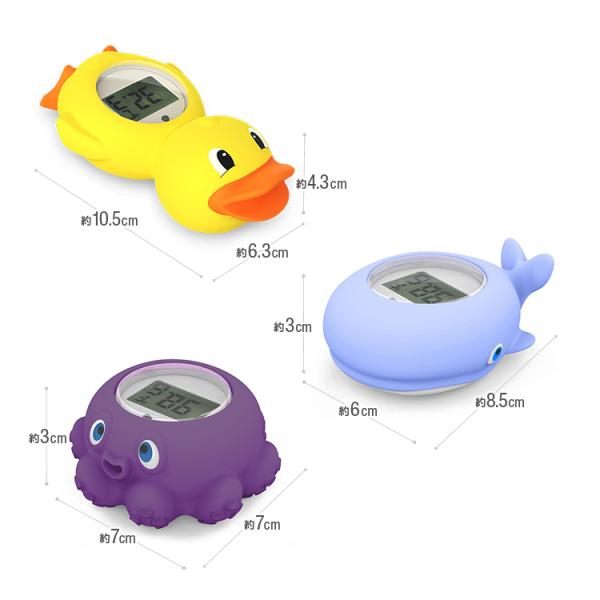 水温計 湯温計 赤ちゃんのお風呂に ベビーバス 沐浴 新生児 お風呂おもちゃ タコ クジラ アヒル デジタル温度計 水に浮かぶ リマインダー設定 水温測定 WTMP813