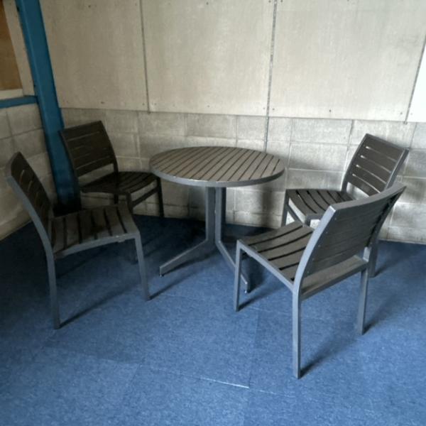 【中古】屋外用 テーブル チェアセット ガーデンテーブルチェアセット 椅子4脚 テーブル1脚 グレー