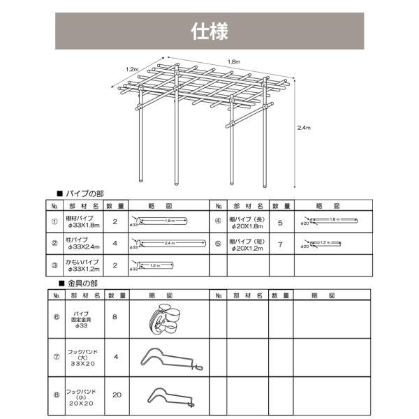果樹棚 フルーツパーゴラ Mタイプ 積水樹脂 奥行1800mm × 幅1200mm × 高さ2400mm 支柱 家庭菜園 栽培 ぶどう キウイ つる性植物 サT 個人宅配送不可 代引不可