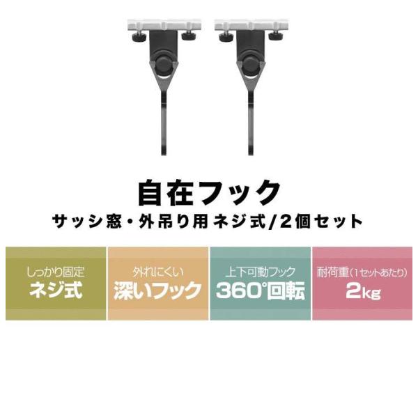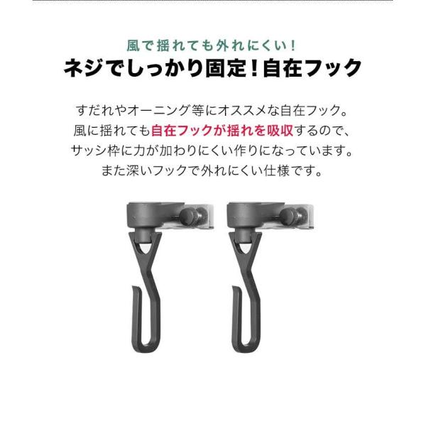 1年保証 フック すだれ オーニング用 自在フック 2個セット サッシ 取り付け 金具 日よけフック 窓 日除け よしず たてす 設置