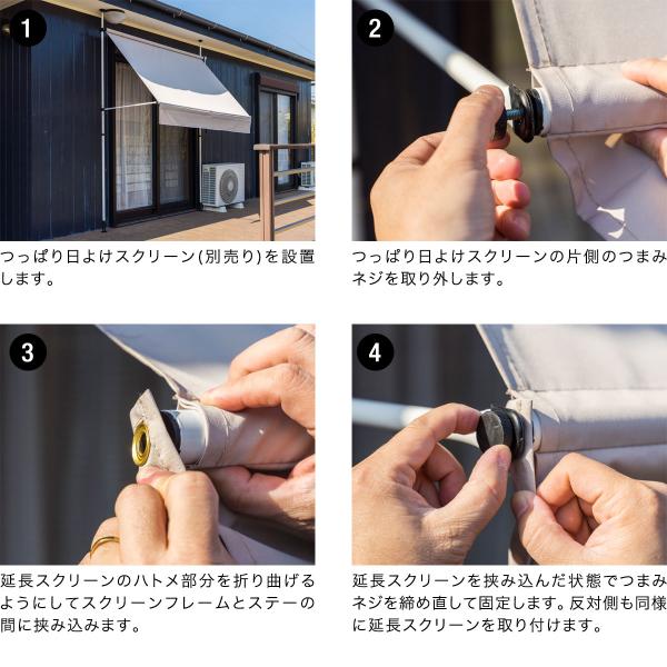 サンシェード つっぱり日よけ用オプション 延長スクリーン 幅2mサイズ用 長さ80cm 屋外 UVカット 99% 撥水 つっぱり日よけスクリーン 1年保証 送料無料