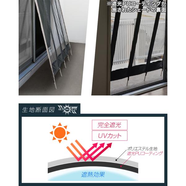 日よけ シェード サンシェード 日除け 巻き上げ式 スクリーン メッシュ 幅180cm×240cm 簡単設置 立て掛け UVカット 完全遮光 遮熱 撥水 1年保証 送料無料