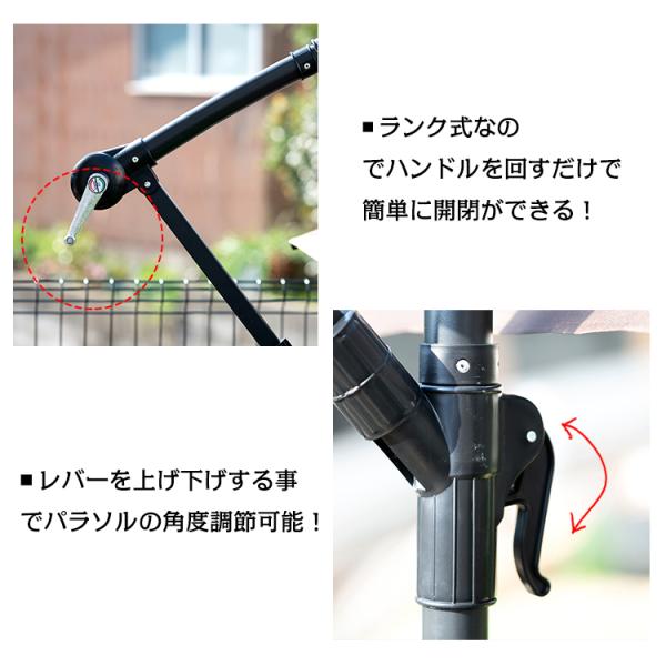 ガーデンパラソル ハンギングパラソル 300cm ベースセット 日よけ 大型 折りたたみ パラソル 風に強い クランク式 角度調整 開閉ハンドル 庭 ガーデン ビーチ