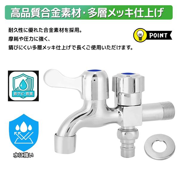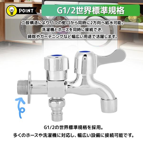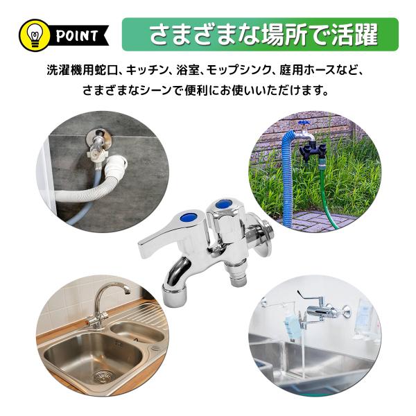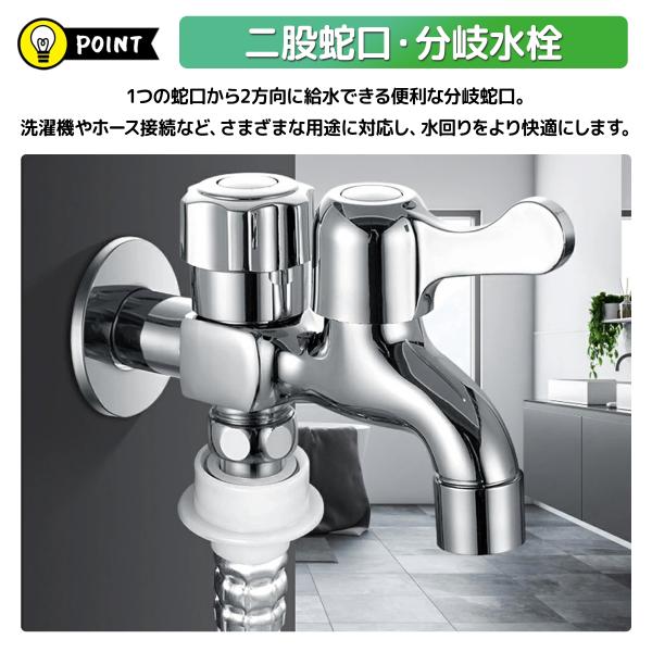 二股蛇口 洗濯機用水栓金具 おしゃれ 壁付け ワンホール 交換自分で 屋外 ガーデン 庭園 水栓柱用 単水栓 2ハンドル 二重出口 水道 二股水栓 洗面台 屋外