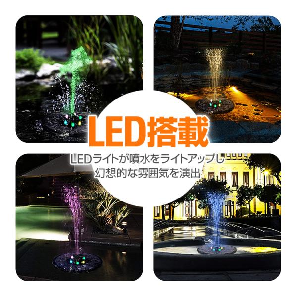 蓄電式ソーラー噴水ポンプ LEDイルミネーション付き 夜間も作動 バッテリー内蔵 フロートタイプ ノズル7種類付属 太陽光発電 園芸 魚の飼育 CSP13D1