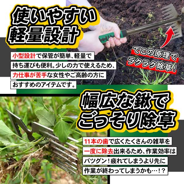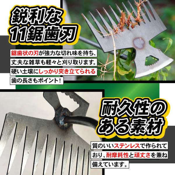 除草くわ 手動除草機 鍬 片手用 11鋸歯草刈り道具 熊手 草刈りレーキ 除草機 根こそぎ 草むしり 雑草抜き 草取り 農作業 園芸 家庭菜園 ガーデニング 除草工具