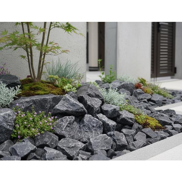 庭石 ロックガーデン 石 割栗石 黒 自然石 大 クラッシュロック ロックガーデン用 割 栗石 クラッシュブラック 約70-180mm 20kg