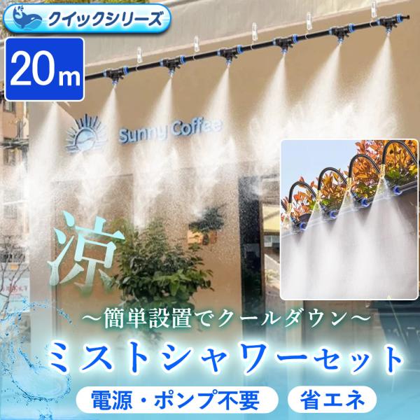 ミストシャワー スターターキット 屋外 20m クイックシリーズ ミストノズル ガーデンクーラー ミスト 内径4mmホース 熱中症対策 暑さ対策 水遊び ヘッド