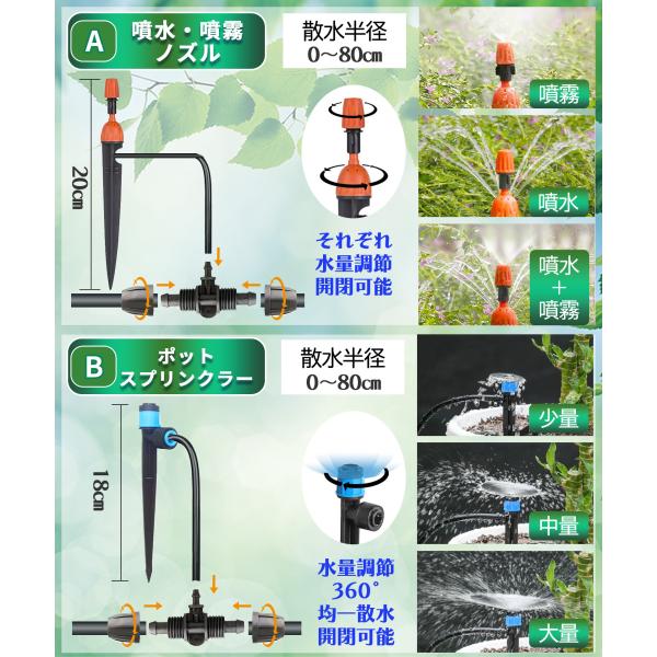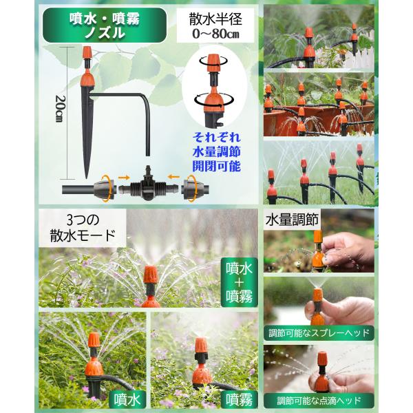 水やりセット ノズルセット 延長用 5m ホース 噴水 噴霧 ミスト 点滴 散水 自動水やり器用 B035-B038