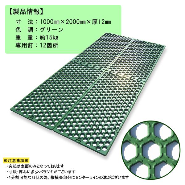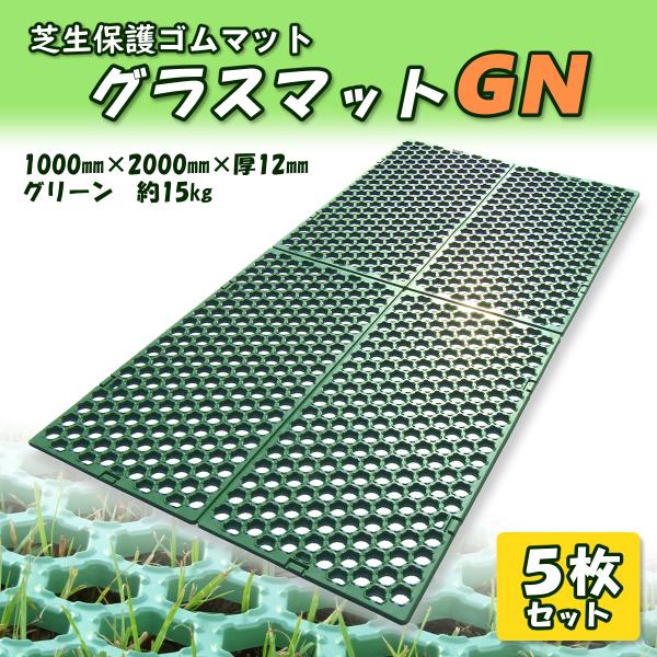 ゴムマット 芝生保護 グラスマットGN グリーン 5枚組 駐車場 泥除け 穴あき 滑り止め 突起付き 厚さ12mm 1m×2m 広島化成