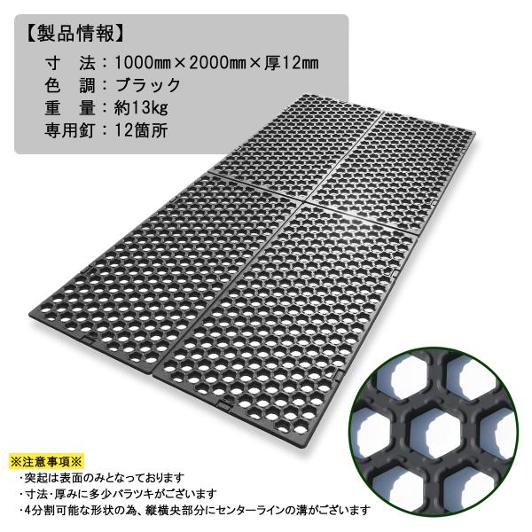 ゴムマット 滑り止め 駐車場 芝生 保護 厚 12mm グラスマットGN ブラック 1枚 仮設用 泥 雪 屋外 幅1m 長さ2m 広島化成