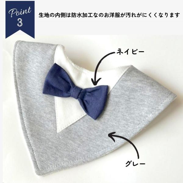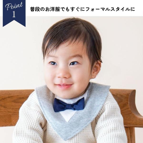 スタイ よだれかけ ベビー 男の子 赤ちゃん フォーマル 蝶ネクタイ付 グレー