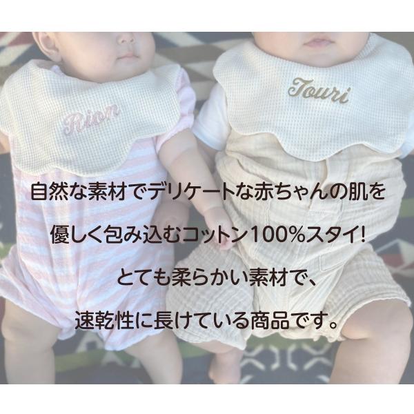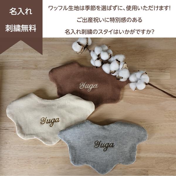 【ワッフルスタイ】名入れ 刺繍 名前入り 名前 スタイ ギフト ワッフル よだれかけ 無地 コットン 100 綿 男の子 女の子 ビブ 入園準備
