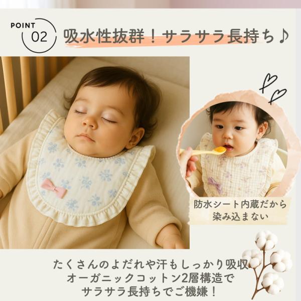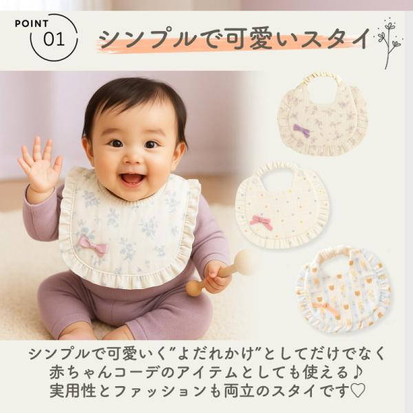 スタイ 5枚組 ラッピング無料 よだれかけ オーガニックコットン100% 前掛け フリル おしゃれ かわいい ベビー 赤ちゃん キッズ 子供 女の子 シンプル 出産祝い