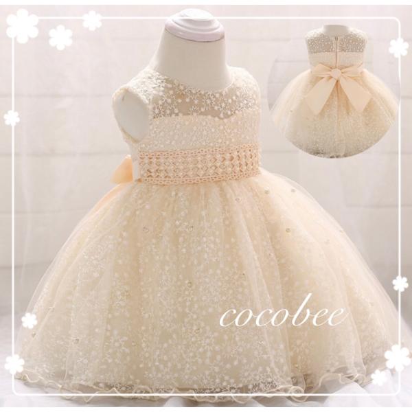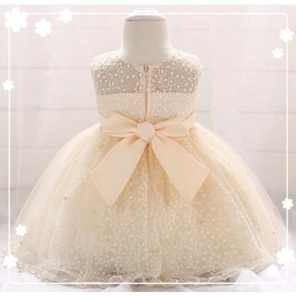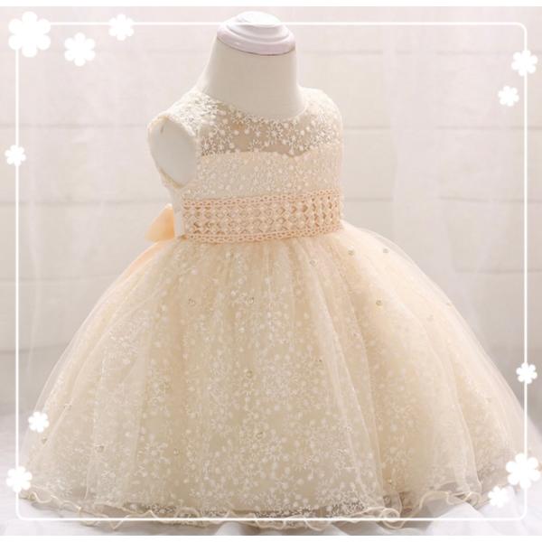 新生児子供ドレス ベビードレス ハーフバースデー衣装 撮影 結婚式 女の子 シャンパンコールドキッズドレス 子供服退院着セレモニードレス 708090cm