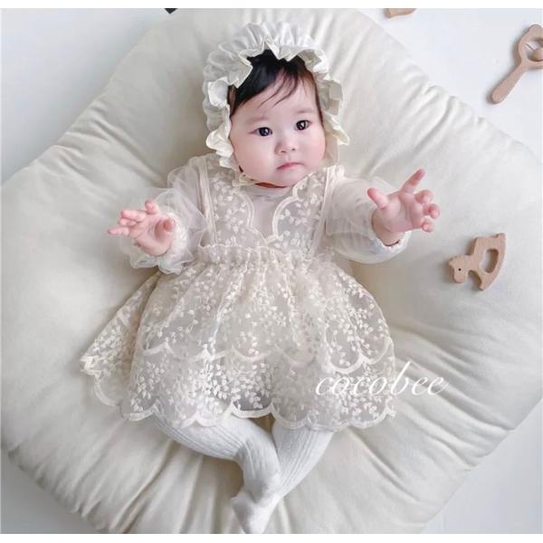 人気子供ドレスワンピース100日祝いお食い初め衣装セレモニードレス退院長袖ベビードレス 女の子ロンパース ハーフバースデー七五三パーティー入園式60708090