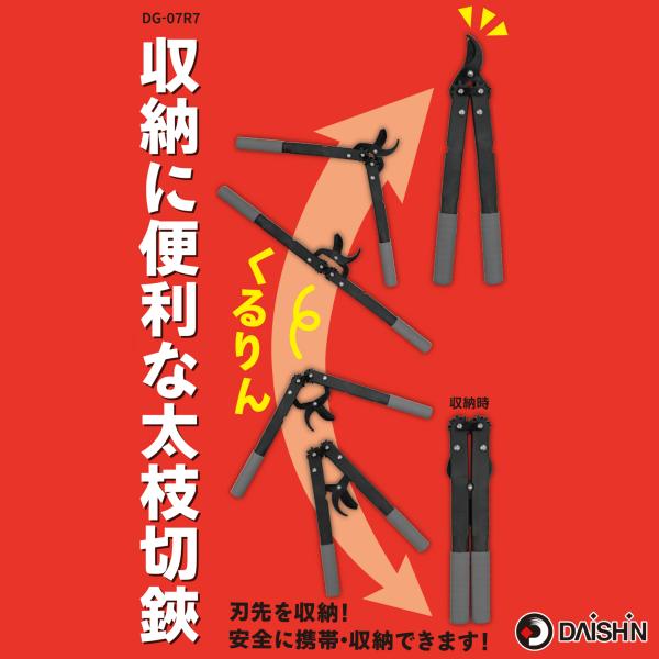 大進 収納に便利な太枝切鋏 太枝切り鋏 剪定 枝 庭木 手入れ はさみ ハサミ エダ 強力 大進 園芸 ガーデニング 農業 女性 農作業 家庭菜園 用具 工具 高枝切鋏