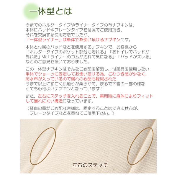 布ナプキン 一体型ライナー Sサイズ(レギュラー) 防水仕様 オーガニックコットン 軽い日 普通の日 昼用 生理用 尿漏れ