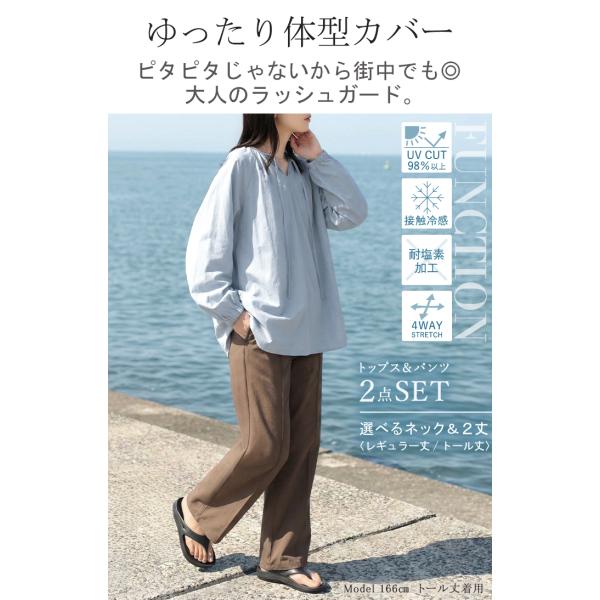 ラッシュガード 上下 2点セット UVカット 水陸両用 レディース 長袖 トップス ロング パンツ キーネック クルーネック 紫外線対策