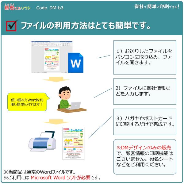 DM‐b3w 定期点検のお知らせ DM作成ファイル(Word版)12ヶ月点検 ハガキデザイン ダイレクトメール 販促ツール